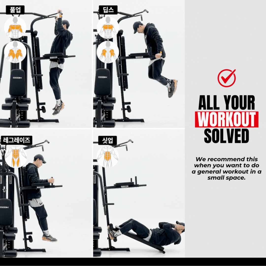 - Home Gym Multifungsi – Satu alat untuk melatih seluruh tubuh.