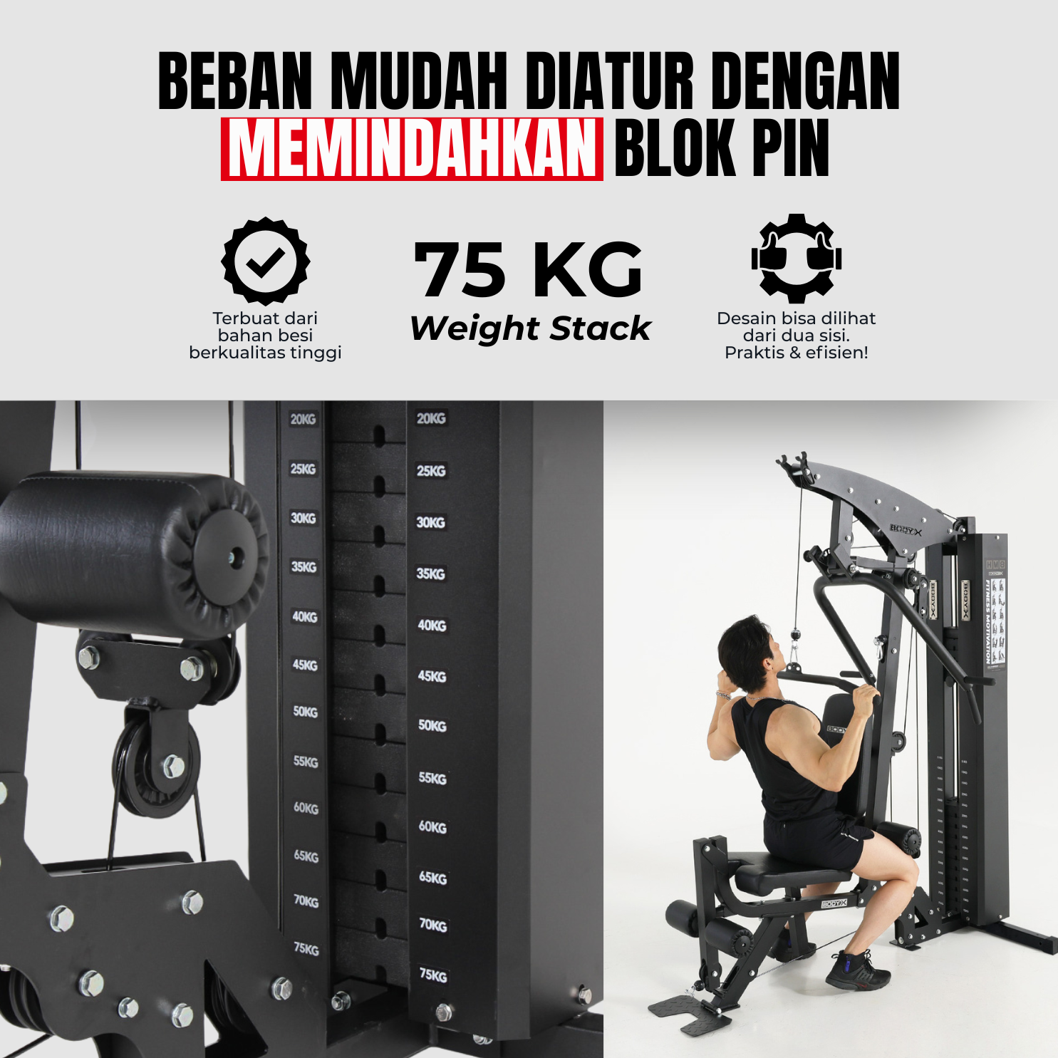 Tingkatkan kualitas latihan di rumah dengan BODYX HM9, home gym multifungsi premium yang dirancang di Korea dan telah lulus sertifikasi keselamatan KC Mark. Terbuat dari rangka baja padat berkualitas tinggi, HM9 hadir dengan desain hemat ruang hanya 95cm lebar, ideal untuk rumah, apartemen, atau ruang fitness pribadi.