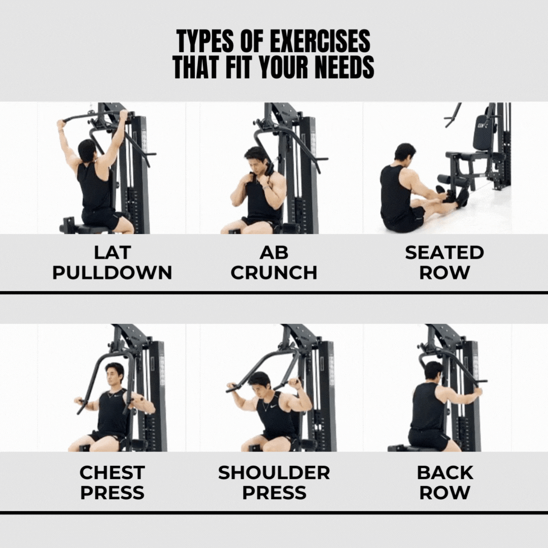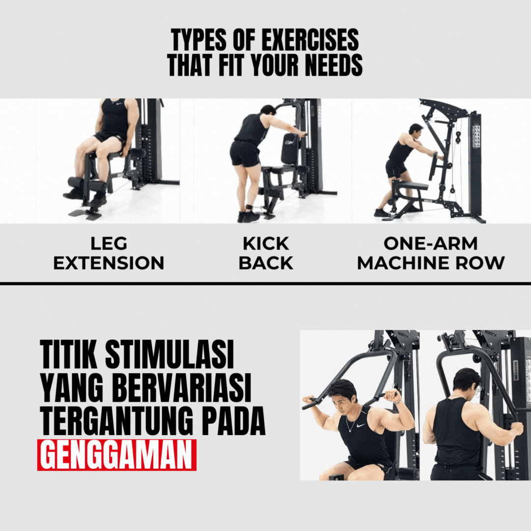 - Home Gym Multifungsi – Satu alat untuk melatih seluruh tubuh.