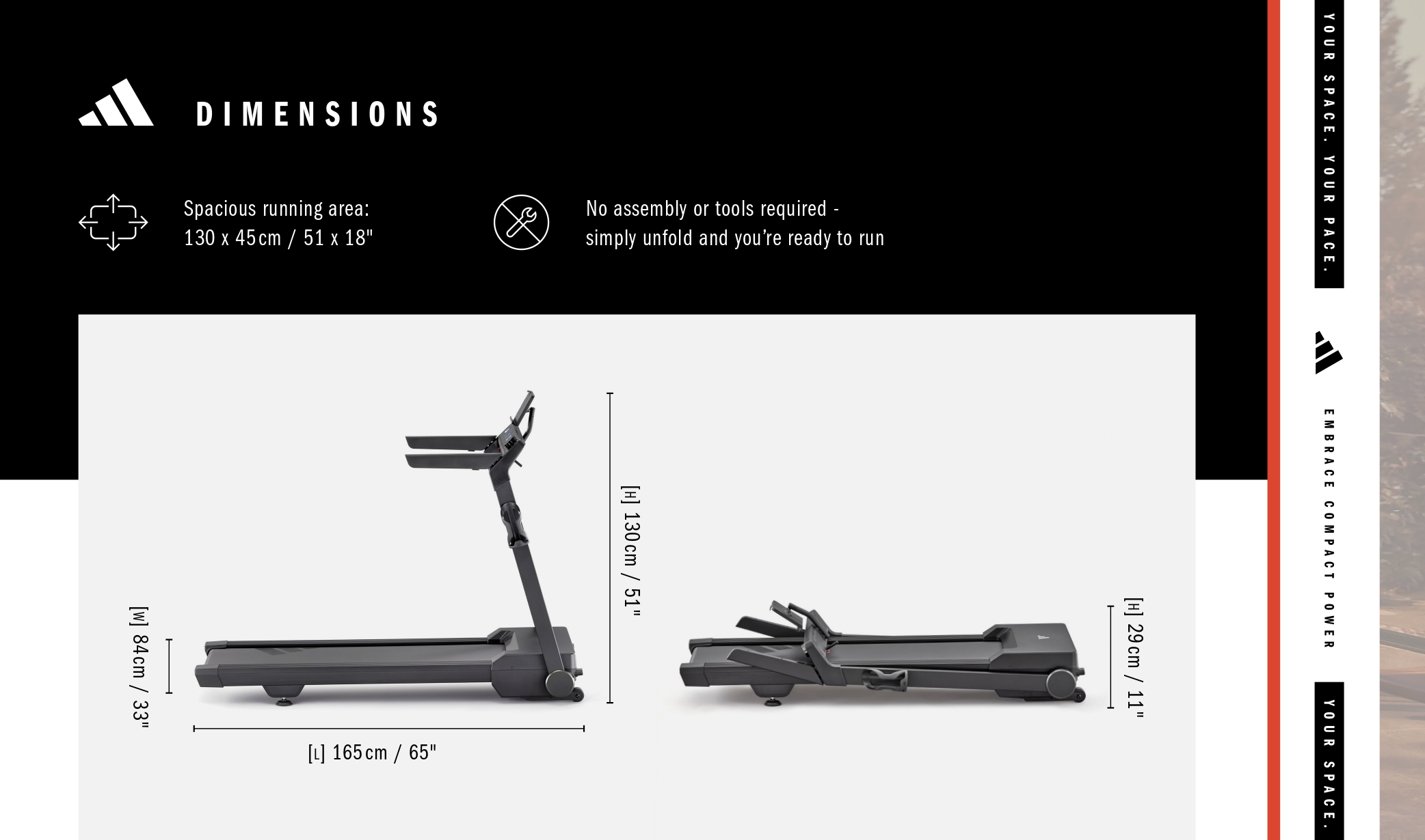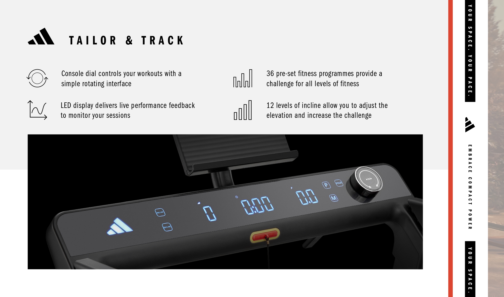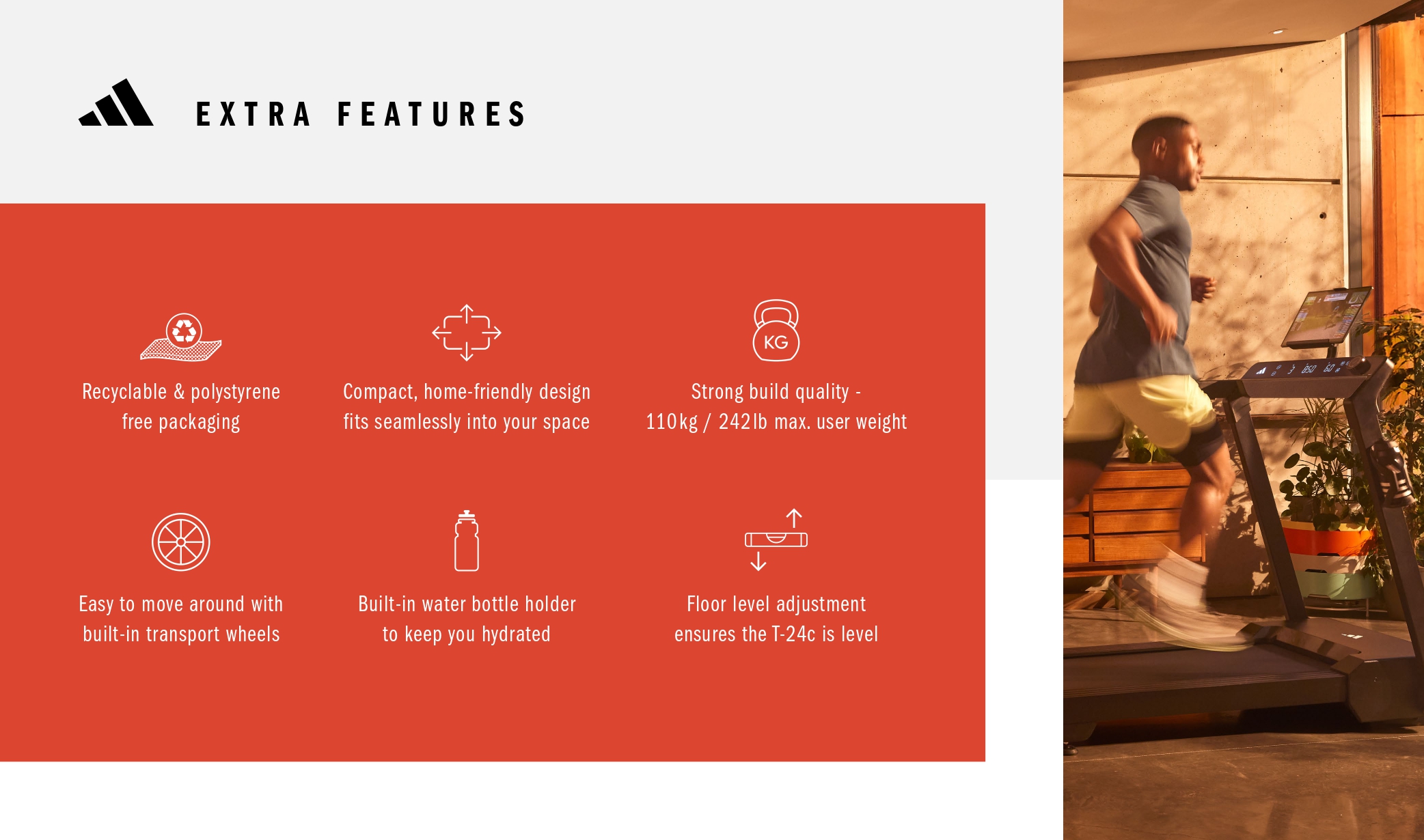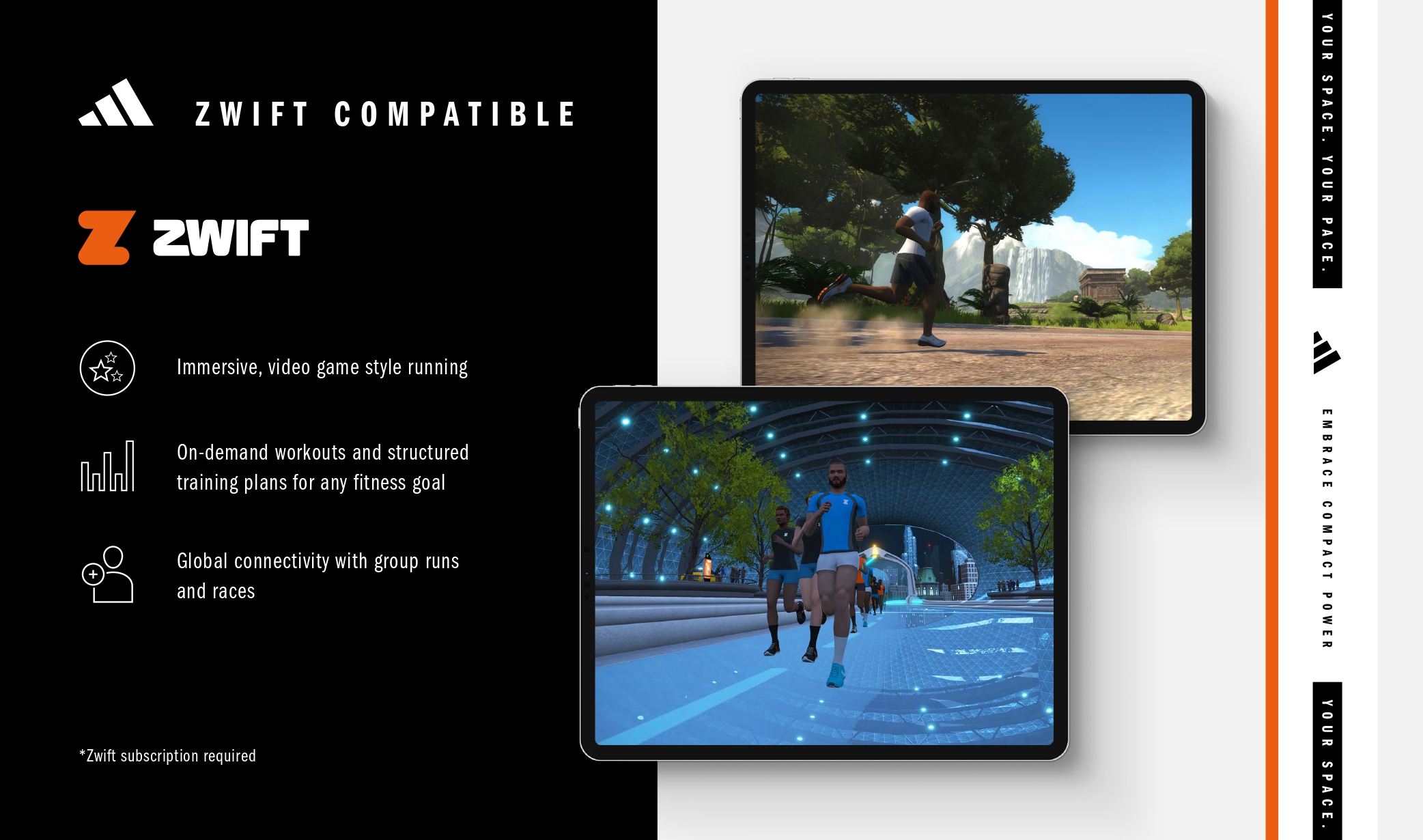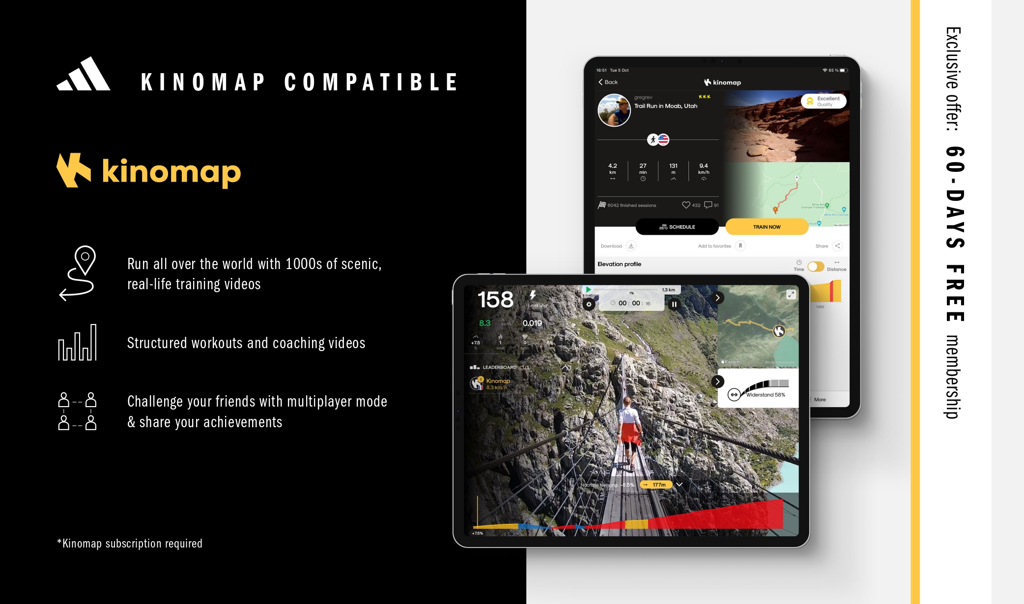 - App Compatibility – Konek ke Adidas Console+ atau Aplikasi populer seperti Kinomap, Zwift, & Strava, dan nikmati latihan interaktif & seru dari rumah.