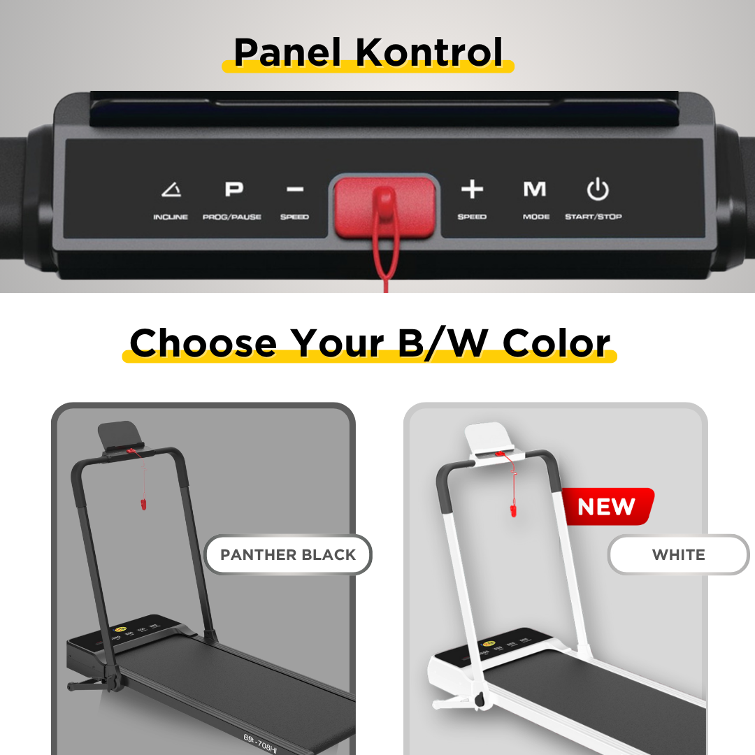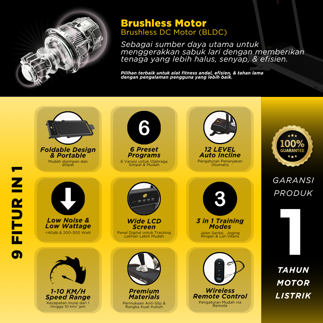 Variasi: 708HI (Running Pad Auto Incline – Top Speed 10KM) / 700H (Running Pad - Top Speed 10KM) / 700 (Walking Pad - Top Speed 6KM)
