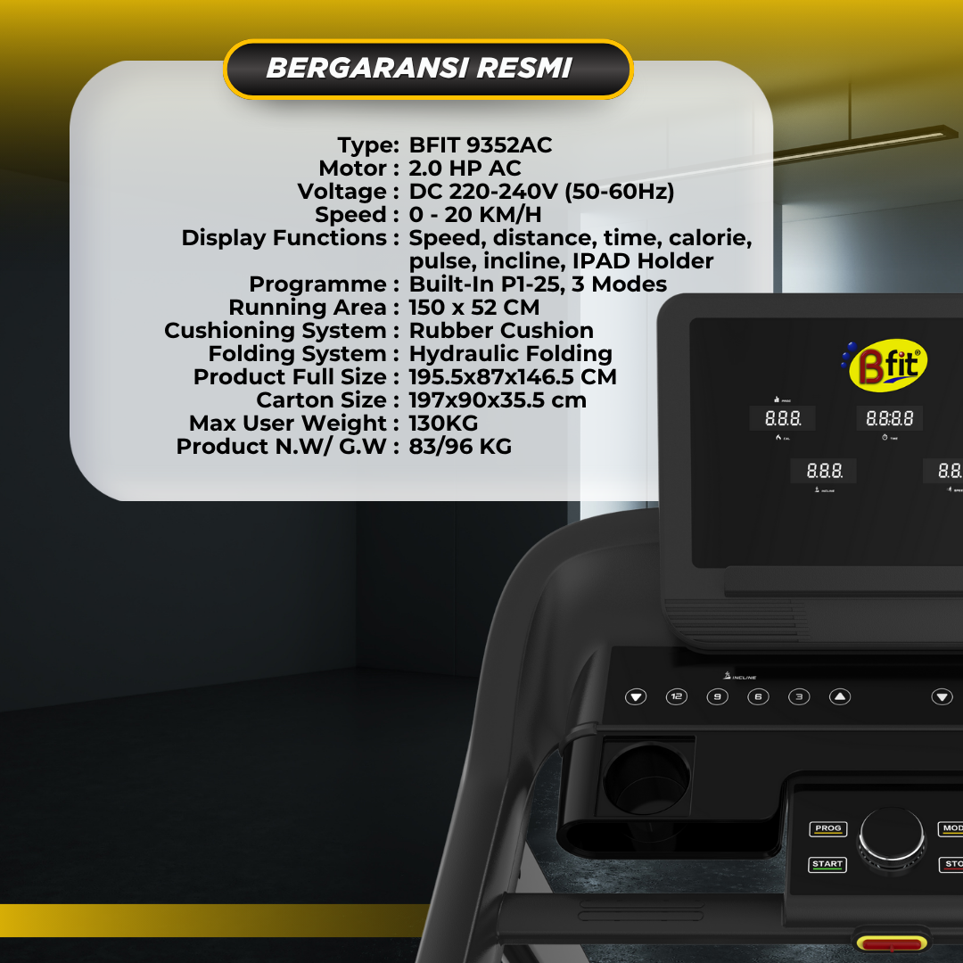 Spesifikasi Treadmill Elektrik BFIT 9352AC :
